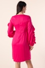 Pamanāma un spilgta Althea kleita pateicoties skaistajam vizuālajam tēlam, sniedz svētku noskaņu. Zīdaina un brīvi krītoša kleita ir ar taisnu siluetu un ar garām piedurknēm. Uz piedurknes ir apburošas rišas un brīvi krītoši , kā arī mugurpusē ir rāvējslēdzējs. Foto: augums 176 cm valkā 36 izmēru.