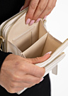 Sieviešu mobilā soma Leonie ir gan stilīga, gan praktiska izvēle ikdienas lietošanai. Tās stepētā apdare un zīmola logo priekšpusē piešķir somai elegantu izskatu. Iekšpusē ir vieta kartēm, kas nodrošina ērtu piekļuvi svarīgākajām kartēm. Šī soma ir lielisks aksesuārs, kas apvieno funkcionalitāti ar modernu dizainu.