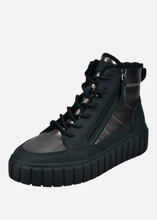 Bagatt sieviešu puszābaki Piper Revo ir stilīgi un pievilcīgi apavi, kas izceļas ar savu jauneklīgo dizainu. Šiem puszābakiem ir platformas zole, kas nodrošina papildu komfortu un siltumu vēsākos laikapstākļos. Spīdīgā virsma piešķir apaviem elegantu izskatu, savukārt šonres priekškusē nodrošina papildu stabilitāti. Rāvējslēdzējs sānos ļauj viegli un ātri uzvilkt un novilkt apavus, padarot tos praktiskus ikdienas lietošanai. Papēdī iestrādātais logo piešķir zābakiem unikālu un atpazīstamu stilu. Dizaina šuve sānos piešķir papildu akcentu, padarot šos puszābakus par lielisku izvēli modes cienītājām.