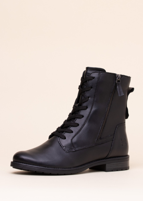 Bagatt sieviešu ziemas zābaki Ronja I ir klasiski un komfortabli apavi, kas lieliski derēs ikdienas valkāšanai. Zābakiem ir zema zole un silts oderējums, kā arī dekoratīvs rāvējslēdzējs sānos un sasienama josta priekšpusē. Papēdī ir logotips, un sāna iekšpusē atrodas gan rāvējslēdzējs, gan elastīgs panelis, kas nodrošina papildu komfortu.