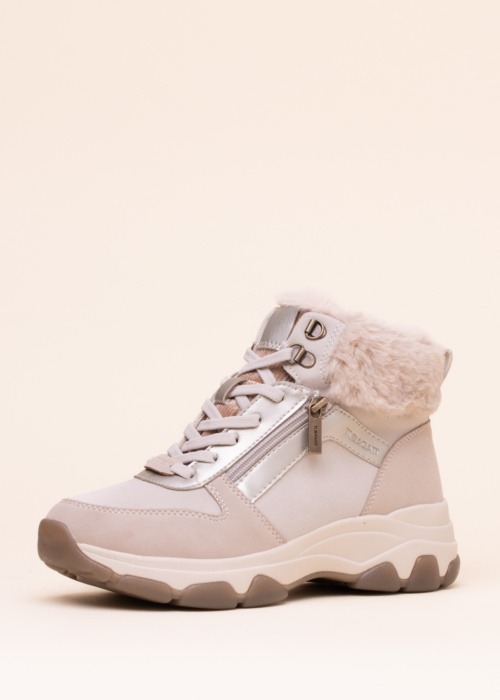 Bagatt sieviešu puszābaki Yoko Revo Tex ir lieliska izvēle ikdienas aktivitātēm, jo tie ir sportiski, jauneklīgi un viegli. Pateicoties Tex membrānai, šie apavi atgrūž ūdeni un ļauj kājām elpot, nodrošinot komfortu jebkuros laikapstākļos. Zābaki ir veidoti ar dekoratīvu augšdaļas malu, sānos ir rāvējslēdzējs un priekšpusē sasienama josta, kā arī zīmola raksts sānos, kas piešķir tiem īpašu šarmu un stilu.