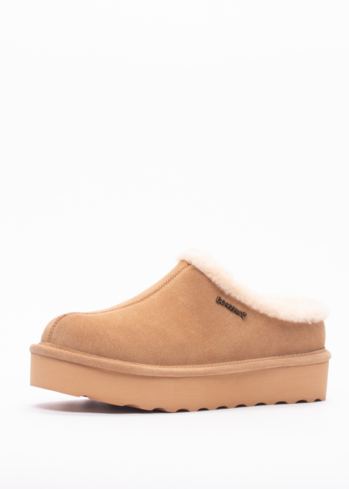 Bearpaw sieviešu čības Izzy Platform Lo ir lieliska izvēle, ja meklējat vieglas un komfortablas kurpes ar platformas zoli. Tās ir siltas un omulīgas, piemērotas valkāšanai gan telpās, gan ārā. Čībām ir dizaina šuve purngalā, kas piešķir tām īpašu stilu. Sānos ir redzams Bearpaw logo, un dekoratīvā mala piešķir tām elegantu izskatu.