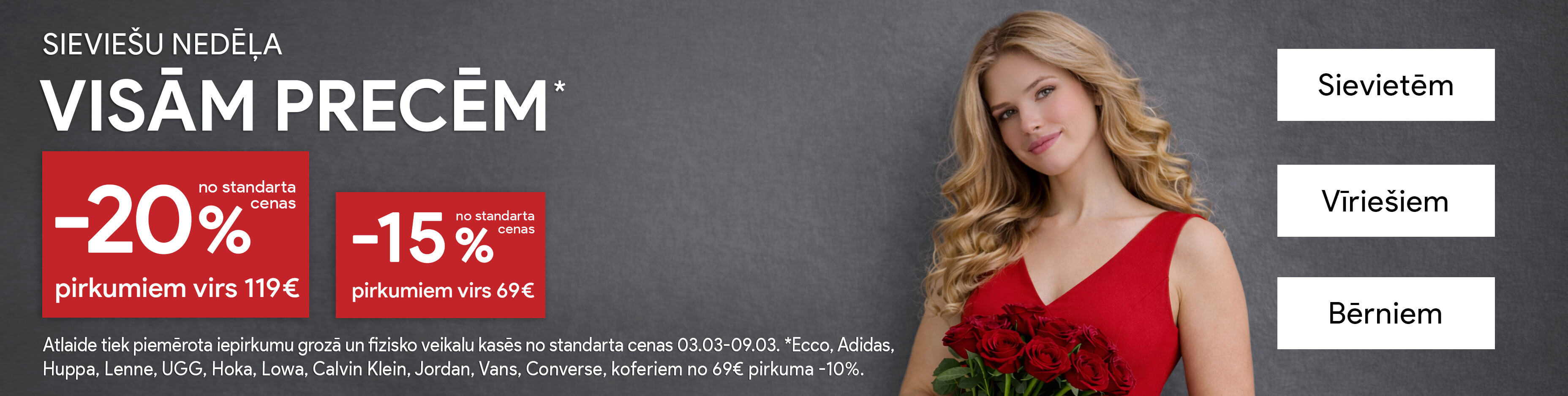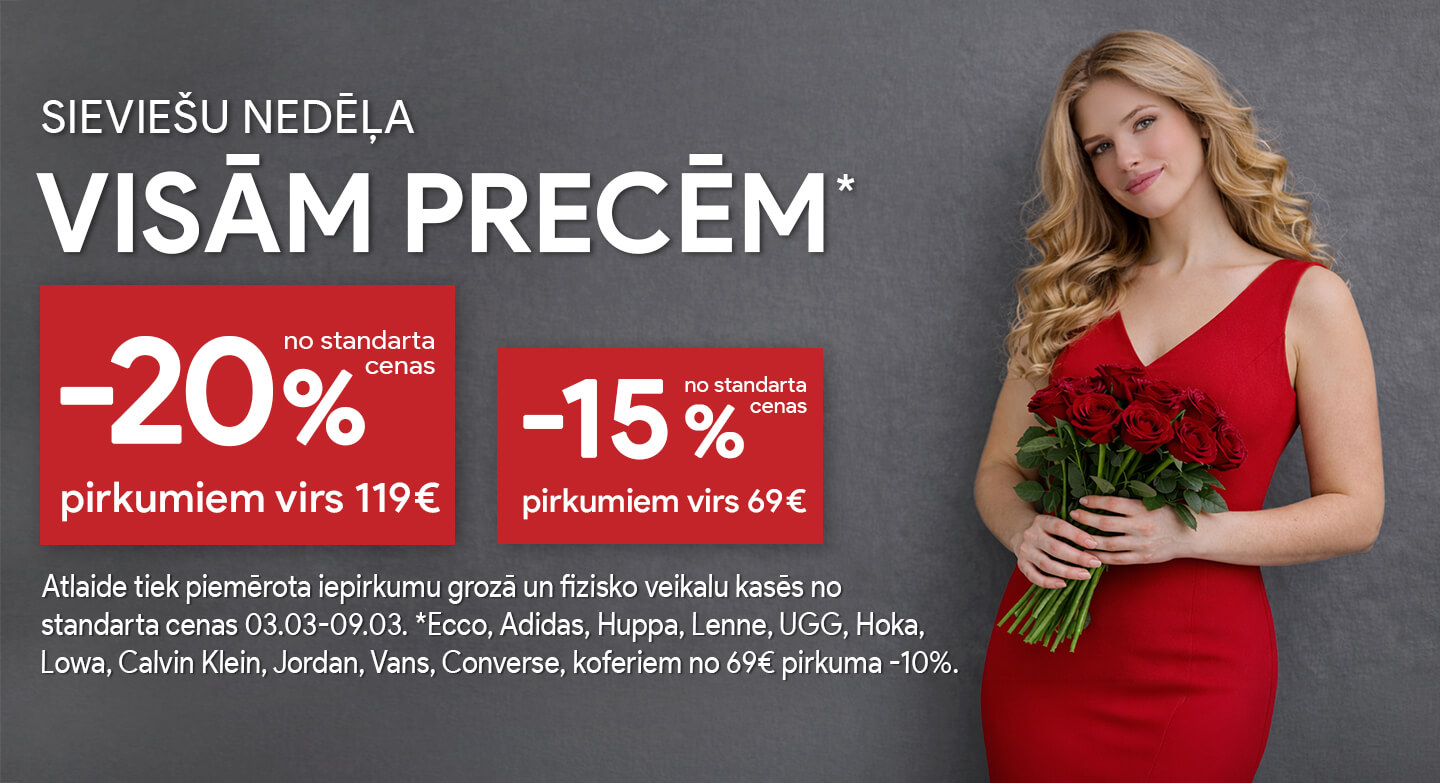 Pērc vairāk, maksā mazāk! Šodien VISĀM PRECĒM -20% pirkumiem no €99, -15% pirkumiem no €69!