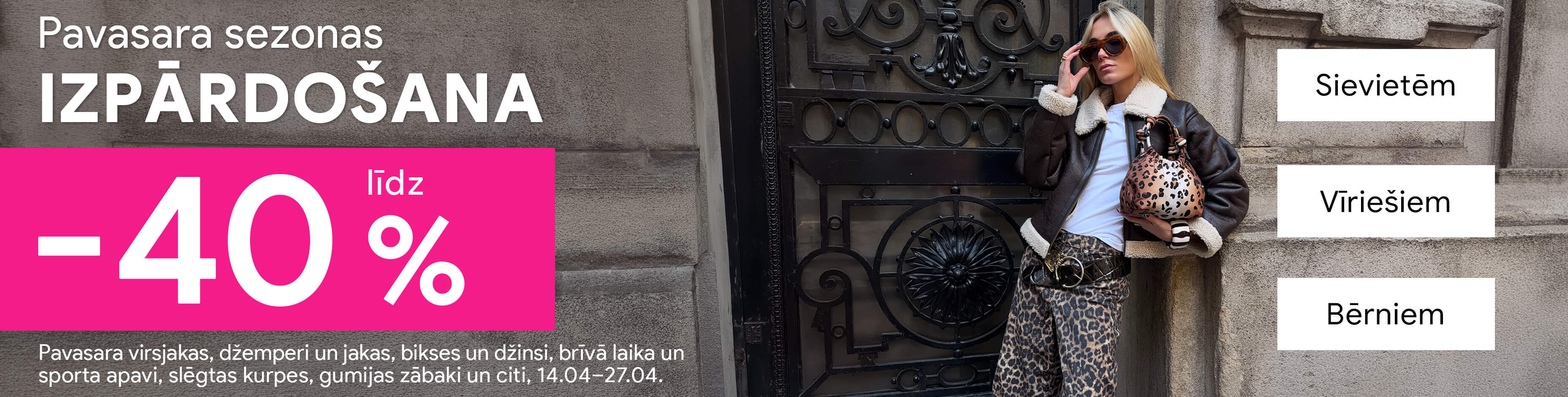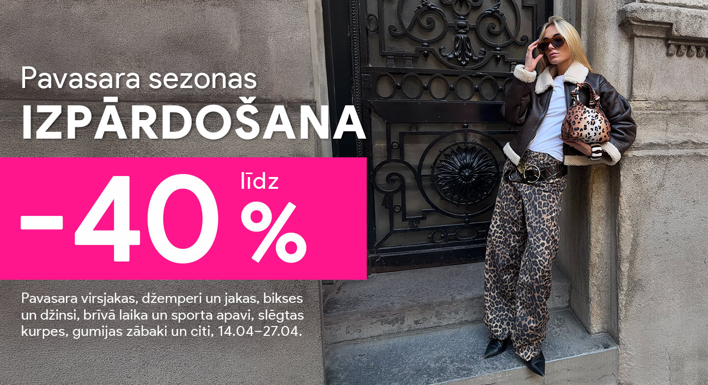 IZPĀRDOŠANA! Rudens virsjakas, džinsa bikses, kurpes, brīvā laika un sporta apavi, puloveri, džemperi u.c. līdz pat -70%! Skatīt sievietēm | vīriešiem | bērniem.