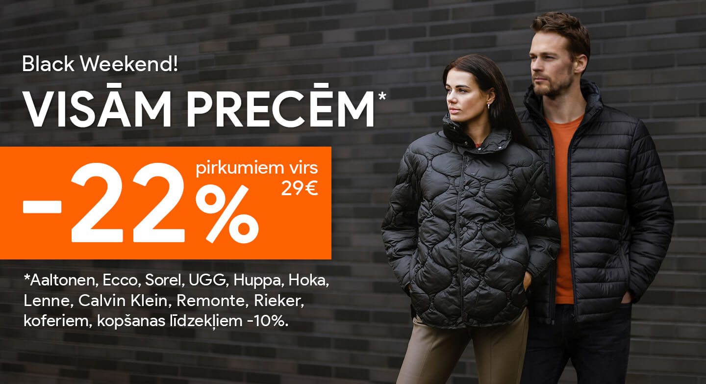 Pērc vairāk, maksā mazāk! Šodien VISĀM PRECĒM -20% pirkumiem no €99, -15% pirkumiem no €69!