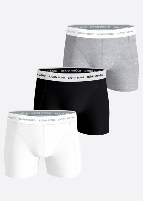 Björn Borg vīriešu bokseršortu komplektā ir trīs pāri no kokvilnas ar elastānu. Audums ir mīksts un labi elpo, viduklī ir elastīga josta, bet piegriezums cieši un stabili pieguļ, lai tie labi derētu ikdienas valkāšanai.