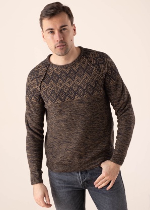 Savdabīgais Blend džemperis piemērots dažāda rakstura dienām. Raibs džemperis ir ar reglāna piedurknēm. Virs pleca dizaina šuves, kā arī valnīši gan piedurkņu galos, gan apakšmalā. Modelis ir 188 cm garš, valkā L izmēru.