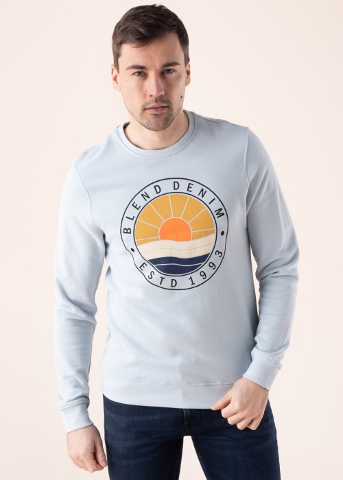 Ērts Blend džemperis parūpējies, lai varētu labi justies visu garo dienu. Mūsdienīgs džemperis ir vienkārši un ar apaļu kakla izgriezumu , kā arī izgatavots no atbildīgi audzētas kokvilnas ar BCI apzīmējumu. Priekšpusē ir drukas attēls un piedurkņu galos un apakšmalā valnīši. Foto: augums 188 cm valkā L izmēru.