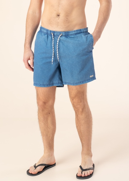 Retrostilā peldbikses ir ar elastīgu jostasvietu un ar platiem staru galiem , kā arī piedevām prece ir plāna un ātri žūstoša. Sānos ir atvērtas kabatas , aizmugurē kabata ar klipsi un uz jostas tuneļa aukla. Iekšpusē plāna tīkliņauduma bikses. Foto: augums 188 cm valkā L izmēru.