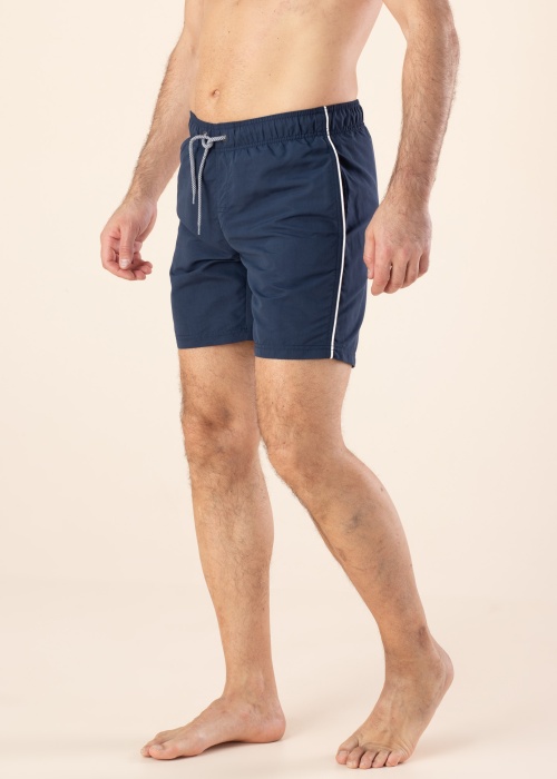 Plānas un ātri žūstošas peldbikses ir ērtas un ar elastīgu jostasvietu. Sānos ir atvērtas kabatas , uz jostas ir tuneļa aukla un aizmugurē ir kabata ar klipsi. Iekšpusē plāna tīkliņauduma bikses. Foto: augums 188 cm valkā L izmēru.