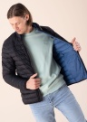 Blend zīmola virsjaka ar vieglu siltinājumu ir ideāla valkāšanai pārejas sezonā. Klasiska dizaina virsjakai ir augsta apkakle, kas patīkami pieguļ valkātāja kaklam, neļaujot vējam tam piekļūt. Priekšpusē stepēta jaka aizdarāma ar klasisku rāvējslēdzēju, krūšu daļu rotā vienkāršs, gumijots zīmola logo. Sānos izvietotas ar slēptām rāvējslēdzējām aizdarāmas kabatas, kurās ērti glabāt svarīgus priekšmetus. Iekšpusi klāj patīkami slidens, zilas krāsas poliamīda audums, kas nodrošina komfortu, ģērbjoties. Modelis ir 193 cm garš, valkā L izmēru. garums no apkakles līdz apakšmalai 70 cm. Materiāls: pamatmateriāls poliamīds 100%, odere poliamīds 100%, siltinājums poliestera šķiedra 100%. Krāsa: melna.