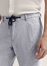 Bugatti vīriešu bikses ir lieliska izvēle vasarai, nodrošinot gan komfortu, gan stilu. Tās ir veidotas retro stilā ar svītrainu rakstu, kas piešķir tām unikālu izskatu. Bikšu viduklis ir vidēji augsts, kas nodrošina patīkamu piegulšanu. Praktiskumu papildina sānu un aizmugurējā kabata ar pogu, kā arī sasienama josta, kas ļauj pielāgot bikšu piegulšanu pēc vajadzības.