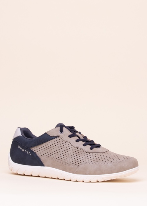 Vīršķīgi Bugatti brīvā laika apavi der valkāšanai ikdienā. Virsma ir izgatavota no mākslīgās ādas un akcentu piešķir zīmola raksts , kā arī praktiskumu piešķir perforējums. Gan iekšējo virsmu, gan zolīti klāj tekstils , kā arī blīvais ārzoles apakšas raksts nodrošina stabilitāti valkāšanas laikā. Esi gatava katrai pārsteidzošai dienai!