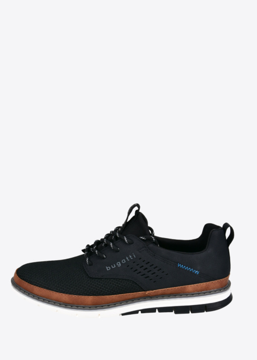 Bugatti vīriešu brīvā laika apavi Sandman ir piemēroti ikdienai un labi iederas gan pilsētas vidē, gan brīvdienu pastaigās. Uz mēlītes redzams zīmola logotips, kas piešķir atpazīstamu akcentu un koptu koptēlu. Arī apavu sānos ir zīmola logotips, kas dizainu padara izteiksmīgāku. Sānos iestrādātā dekoratīvā šuve piešķir apaviem formu un papildina kopējo izskatu. Savukārt šņores ļauj apavus viegli pielāgot pēdai un nodrošina patīkamu valkāšanu visas dienas garumā.