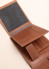 Naudasmaka iekšpusē 2 nodalījumi skaidrai naudai, 17 knodalījumi kartēm un ar spiedpogām nodalījums monētām.