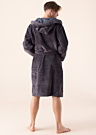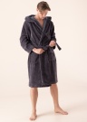Bugatti peldmētelis Roberto lutina ar savu mājīgumu. Peldmētelis ar kapuci ir mīksts un silts, ar jostu vidū sasietu un atvērtām kabatām priekšpusē. Praktisks un ērts apģērba gabals ir neaizstājams miegainos rītos, pēc dušas vai relaksējos vakaros. Modelis ir 193 cm garš un valkā L izmēru. Garums no kakla daļas līdz apakšai ir 118 cm. Materiāls: kokvilna 50%, poliesters 50%. Krāsa: pelēka