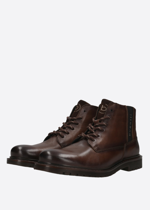 Bugatti vīriešu puszābaki Veda Evo ir stilīgs un vienmēr moderns apavu modelis, kas lieliski papildinās jebkuru garderobi. Šie zābaki ir ne tikai praktiski, bet arī ļoti komfortabli, nodrošinot ērtības visas dienas garumā. Pateicoties siltajam oderējumam, tie ir ideāli piemēroti valkāšanai ikdienā, īpaši aukstākos laikapstākļos. Priekšpusē esošā sasienamā josta piešķir zābakiem elegantu izskatu, savukārt sānos iestrādātais rāvējslēdzējs nodrošina vieglu uzvilkšanu un novilkšanu. Gumijas panelis sānos ne tikai uzlabo apavu izturību, bet arī piešķir tiem modernu akcentu. Zīmola raksts sānos apliecina Bugatti kvalitāti un stilu, padarot šos zābakus par lielisku izvēli ikvienam vīrietim.
