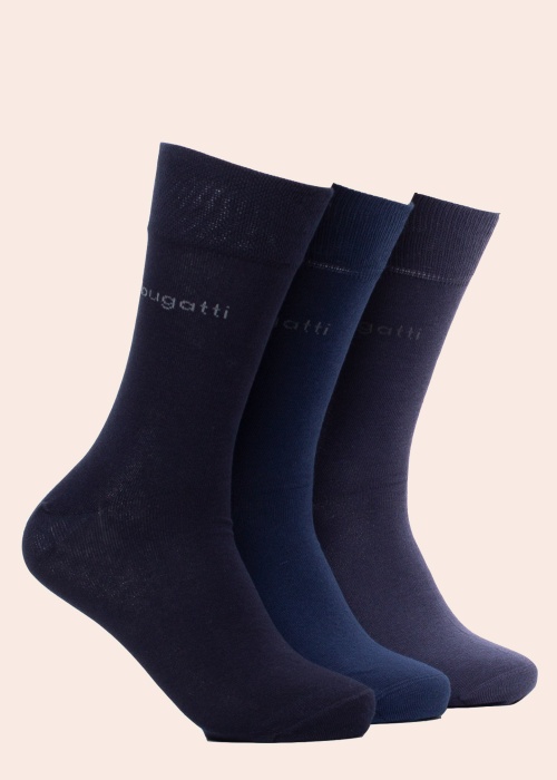 Vienkārša dizaina, nevainojami ērtas un kājās mīkstas Bugatti zīmola zeķes ir ideālas valkāšanai ikdienā. Zeķu augšmala no elastīga valnīša, ērti pieguļ ap valkātāja kāju. Akcentu piešķir uz zeķēm esošie, minimālistiskie zīmola ieraksti. Komplektā ir trīs pāri, un zeķes iepakotas efektīgā dāvanu kastītē. Materiāls: kokvilna 78%, poliamīds 20%, elastāns 2%. Krāsa: zila/tumši zila.