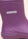 Camminare gumijas zābaki Roma ir patīkami viegli! Violetajiem gumijas zābakiem ir vienkāršs izskats, vienīgā pamanāmā detaļa ir sudrabaini spīdīgais zīmola logotips ārpusē. Bez oderes. Iekšpusē ir viegli polsterēta, plāna zolīte, kuru pēc vajadzības var noņemt vai nomainīt. Sintētiskajai ārzolei ir dziļāks raksts.