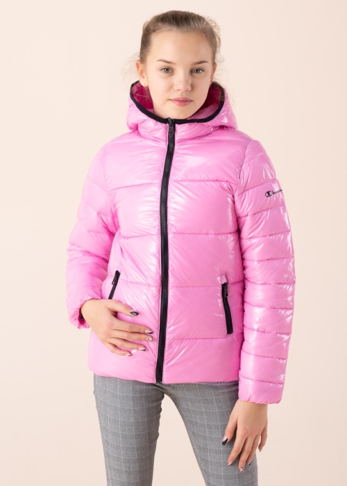 Uzkrītoši rozā pavasara-rudens virsjaka ar spīdīgu virsmu ir ideāli piemērota ikdienas valkāšanai. Priekšpusē tā aiztaisāsar rāvējslēdzēju, kapuce un apkakle aizsargā no vējiem. Kreisās piedurknes augšdaļā ir zīmola logotips. Iekšējā virsma ir pārklāta ar slidenu poliestera audumu, kas nodrošina komforta sajūtu to valkājot. Stepēta stila koši rozā jaka ir lieliska izvēle pavasara-rudens sezonai. Modelis ir 152 cm garš un valkā M izmēru. Garums no aizmugures līdz apakšai 54 cm. Materiāls: virsma - poliamīds 100%, iekšējā virsma - poliesters 100%, izolācija - poliestera šķiedras. Krāsa: rozā.