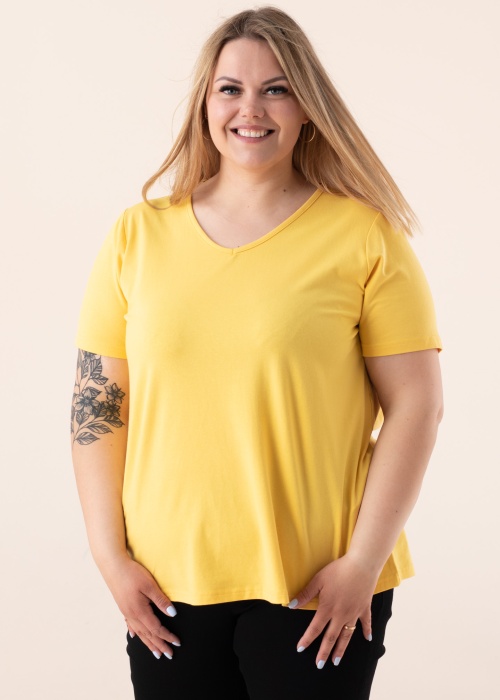 Ciso T-krekls ir jauka izvēle valkāšanai ikdienā! Mīlīgas krāsas T-kreklam V-veida kakla izgriezums, izteikti mīksts un elastīgs audums ir fantastiski ērts pret ķermeni. Modeles augums 167 cm, valkā L izmēru.