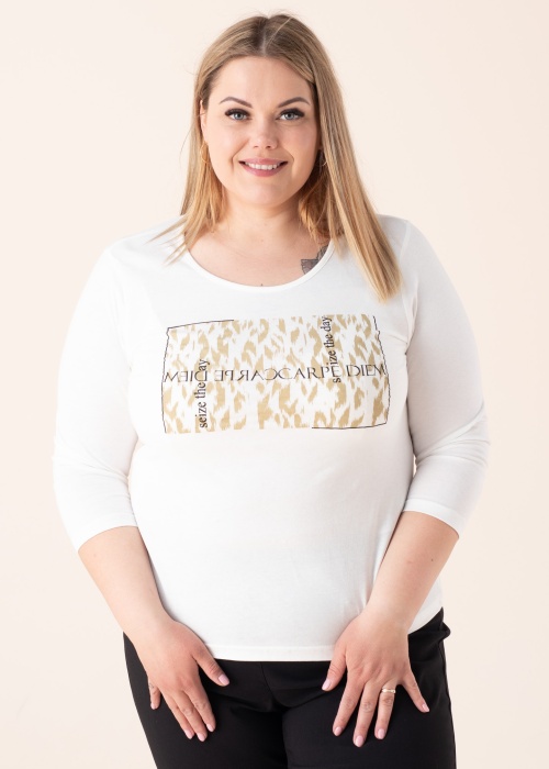 Šajā Ciso T-kreklā jūties ērti jebkurā mirklī! Vienkrāsainu T-krekla virsmu bagātina pusgaras piedurknes, apaļas formas apkakle un moderna druka uz krūtīm. Kokvilnas audums ir patīkami mīksts un ērts. Modeles augums 167 cm, valkā S izmēru. Materiāls: kokvilna 100%. Krāsa: balta.