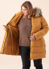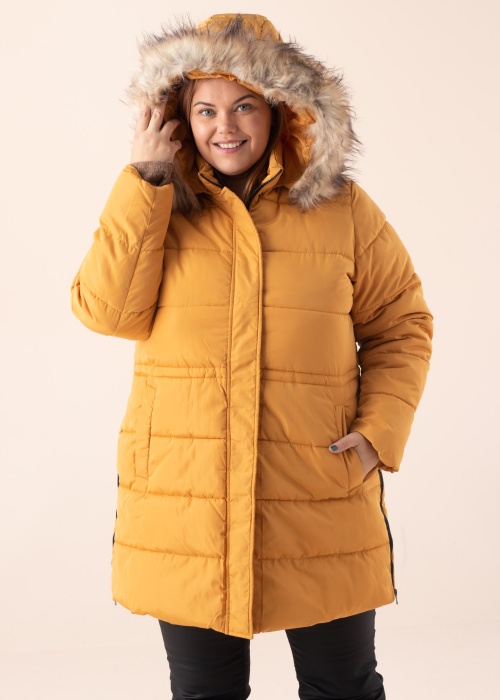 Košas krāsas Ciso ziemas mētelis sniedz siltuma sajūtu un labi izskatās. Efektīvs ziemas mētelis ir omulīgs un viegls. Priekšpusē ir aizdare ar rāvējslēdzēju un spiedpogām, sānos ir kabatas. Viduklī ir elastīga gumija un iekšpusē atvērta krūšu kabata. Fiksēto kapuci rotā noņemama mākslīgās kažokādas apmale un ārpusē ir ar rāvējslēdzēju. Foto: augums 167 cm valkā L izmēru.