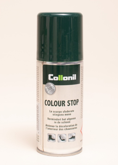 Collon krāsas maiņas samazinātājs ir paredzēts, lai mazinātu zeķu un kāju krāsošanos un netīrību apavu iekšpusē. Lietošana: izsmidzināt uz apaviem un atstāt izžūt. Izmantot vairākas reizes, lai iegūtu labāku rezultātu.