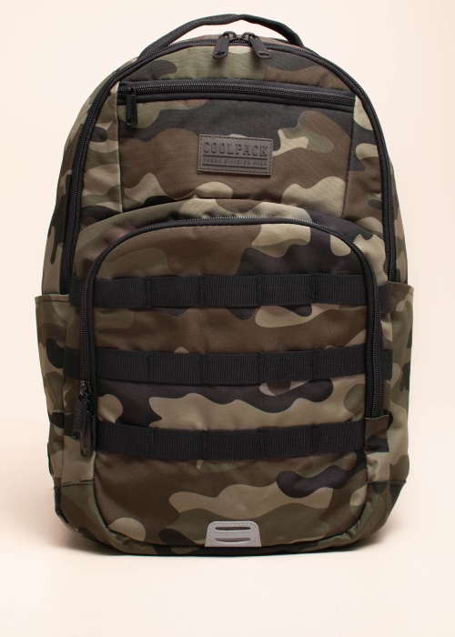Militāra Coolpack mugursoma ir ar labi pārdomātu risinājumu. No izturīga auduma mugursoma ir daudzpusīga un . Virsma ir izgatavota no tekstila un galvenais nodalījums atverams "deco/detail1!". priekšpusē ir kabatas ar rāvējslēdzējiem un iekšpusē ir datorkabata ar aizsargājošu polsterējumu. Muguras daļa ir ergonomiski polsterēta, plecu siksnu garums ir regulējams, un krūšu siksna palīdz vienmērīgāk sadalīt svaru.