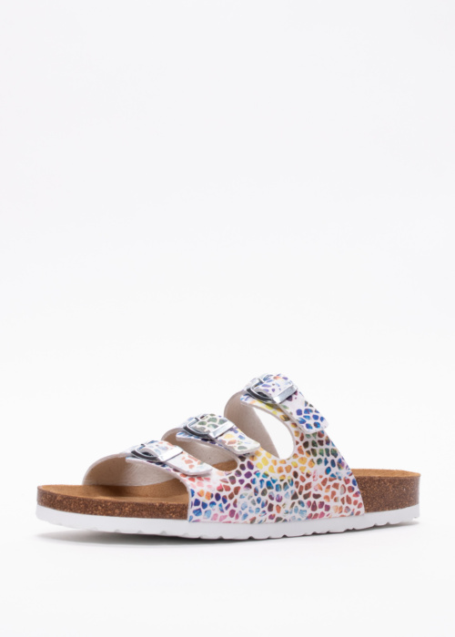 Cosmos sieviešu sandales ir lieliska izvēle vasarai, nodrošinot komfortu un stilīgu izskatu ikdienas gaitās. Tās izceļas ar interesantu dizainu, kas piešķir apaviem unikālu izskatu un pievilcību. Sandales ir aprīkotas ar sprādzi sānos, kas nodrošina ērtu un drošu fiksāciju, savukārt zems papēdis garantē komfortu visas dienas garumā. Šīs sandales ir ideāli piemērotas gan pastaigām pa pilsētu, gan atpūtai pie jūras.
