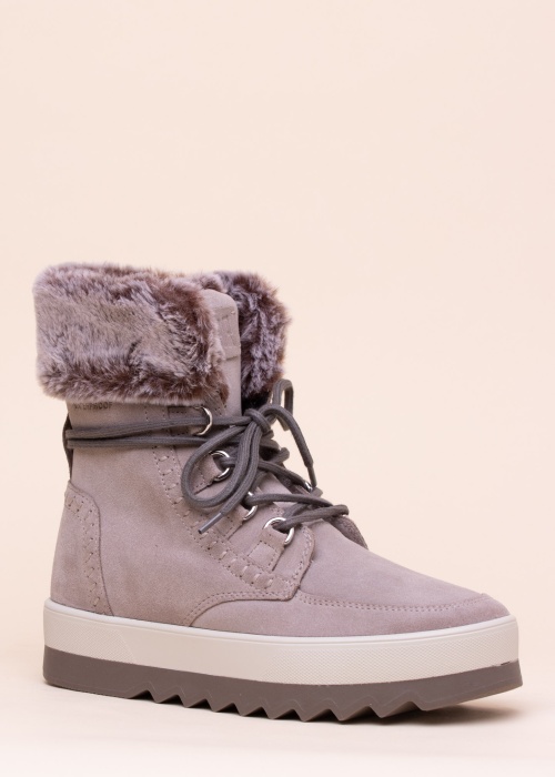 Jauki Cougar ziemas zābaki der valkāšanai ikdienā. Virspusi pārklāj zamšāda un akcentu piešķir dekoratīva mala. Iekšējo virsmu pārklāj pūkains tekstilizstrādājums un iekšzole, nepieciešamības gadījumā, ir izņemama. Gumijas zole ar papēža pacēlumu un labu saķeri ar virsmām. Šoziem Tev nebūs jāsalst!