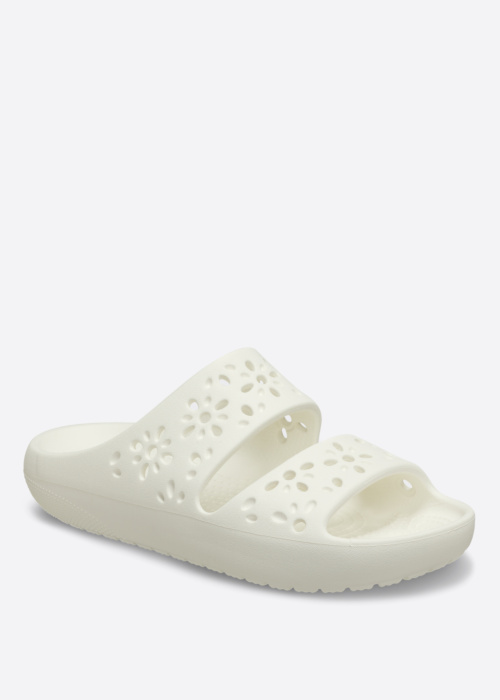 Crocs sieviešu baseina čības ar ziedu rakstu ir vieglas un komfortablas, padarot tās par lielisku izvēli vasaras sezonai. Tās izceļas ar skaistu ziedu dizainu, kas piešķir apaviem sievišķīgu un stilīgu izskatu. Caurumi virspusē nodrošina papildu ventilāciju, kas palīdz saglabāt kājas vēsas un sausas.