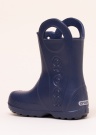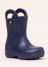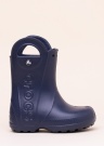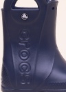 Spilgtās krāsas Crocs Handle It gumijas zābaki. Ar tiem var ar prieku spēlēties, jo tie ir ļoti ērti un viegli. Gumijas ir izgatavotas no Croslite materiāla, kas ir antibakteriāls un viegli tīrāms un kopjams, turklāt Croslite materiāls īpaši pielāgojas pēdas formai. Nelīdzenā gumijas zole nodrošina labu izturību pat ļoti mitros apstākļos. 28-29. izmēra svars ir 150 g. Krāsa: tumši zila.