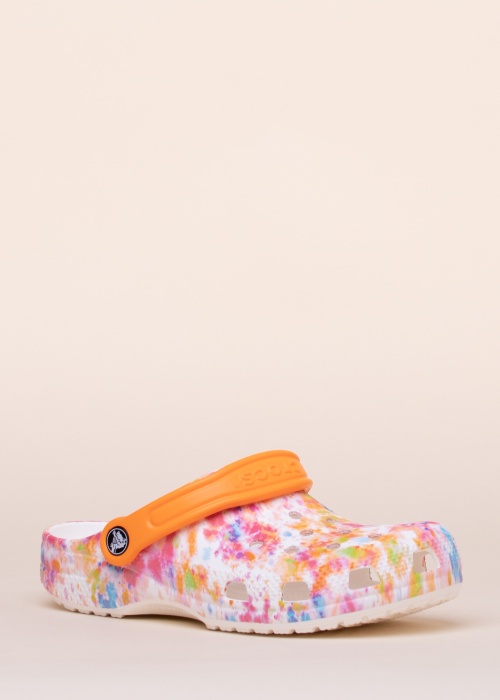 Stiletos, daudzkrāsainās un sievišķīgās Crocs Sandals Classic ir ideāli piemērotas ikdienas valkāšanai. Deguna daļā un augšējā virsmā ir caurumi, kas uzlabo gaisa caurlaidību un neliek kājām svīst. Ap lietotāja pēdu tie stabili turas, pateicoties plānākam panelim. Zolīte ir pārklāta ar mumijas rakstu, kas masē pēdu. Ārzolei ir blīvs raksts, kas veicina stabilitāti uz virsmām. 36-37 izmēra apavu svars ir 121 g. Krāsa: krāsaina/rakstaina.