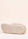 Modernas Crocs sandales der valkāšanai gan iekštelpās, gan ārā. Virsma ir izgatavota no sintētiska materiāla un akcentu piešķir interesants dizains , kā arī praktiskumu piešķir perforējums. Gan iekšējo virsmu, gan zolīti klāj biezs pūku tekstilizstrādājumu. Gumijas zole ar papēža pacēlumu un labu saķeri ar virsmām. Šiem apaviem pilsētas ielas ir īsta modes paradīze.