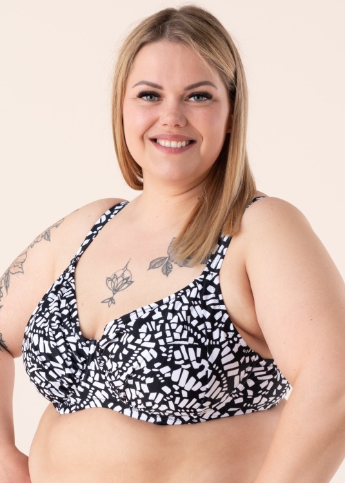 Damellas bikini krūštura sievišķīgais stils perfekti piemērota pludmales prieka baudīšanai! Peldkostīmam atbalstu piešķir elastīgas un vieglas atbalsta arkas, regulējamas plecu lentes elastīgi un ērti pieguļ muguras daļai, kas aizdarāma ar sprādzes aizdari. Peldkostīma iekšpusē papildu odere no tīkliņauduma. Modeles augums 167 cm, valkā 46E izmēru.