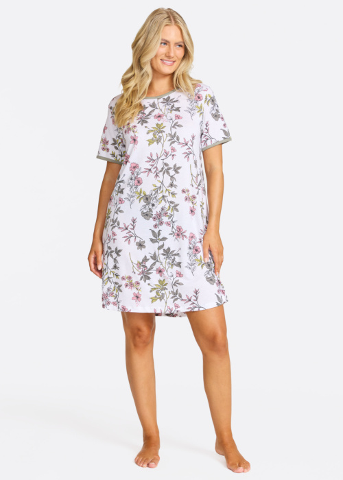 Damella sieviešu naktskrekls ir veidots ar elegantu ziedu rakstu, kas piešķir tam sievišķīgu un pievilcīgu izskatu. Īsās piedurknes un vienkāršais dizains padara šo naktskreklu par lielisku izvēli siltām vasaras naktīm. Viegls un patīkams materiāls sniedz mājīguma sajūtu, nodrošinot komfortu visas nakts garumā.