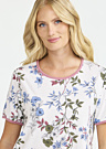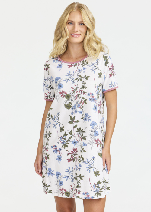 Damella sieviešu naktskrekls ir veidots no maiga un elastīga auduma, kas nodrošina patīkamu sajūtu visas nakts garumā. Tas ir dekorēts ar skaistu ziedu rakstu, kas piešķir tam sievišķīgu un elegantu izskatu. Naktskrekls ir ar īsām piedurknēm un apaļu kakla izgriezumu, padarot to piemērotu gan siltām vasaras naktīm, gan vēsākiem vakariem.
