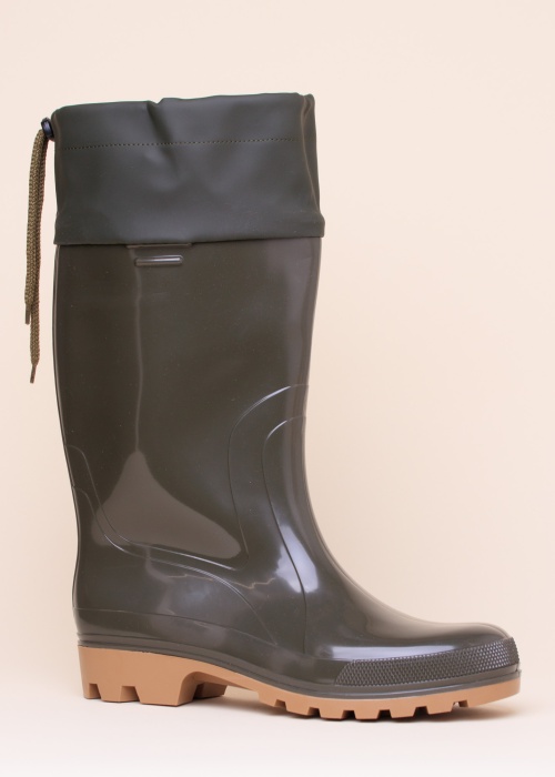 Vienkrāsaini Demar gumijas zābaki Grand ir ideāli valkāšanai ikdienā. Stulma augšdaļa izgatavota no ūdeni atgrūdoša tekstila, kas aizmugurē regulējams ar stoperiem un savilcējauklu. Iekšpusi uz kājas klāj mīksts tekstils, bet iekšzoli, ar filca virsmu, pēc vēlēšanās var izņemt. Ārzole gumijas, dziļš apakšas raksts, tādējādi nodrošinot labu saķeri ar virsmām. 46. izmēra svars 914 g. Krāsa: haki.