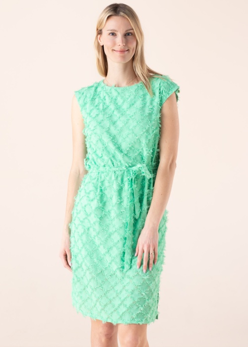 Burvīga Denim Dream kleita izcels Tevi no pelēkās masas. Pievilcīga ar cap piedurknēm kleita ir ar taisnu siluetu viegla un brīvi krītoša. Viduklī ir sasienama josta uz muguras pogu aizdare un sānos šķēlumi. Iekšpusē ir apakškleita. Foto: augums 177 cm valkā S izmēru.