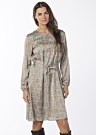 Denim Dream sieviešu kleita Kannike08 ir eleganta un klasiska izvēle svinīgiem pasākumiem. Kleita ir viegla un gaisīga, ar garām piedurknēm, kurām galos ir savilkšanas gumija, un priekšpusē ir pogu aizdare. Viduklī kleita ir papildināta ar sasienamu jostu, kas piešķir tai izsmalcinātu izskatu. Modeles augums ir 176 cm, un viņa valkā S izmēru.