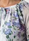 Denim Dream sieviešu svētku kleita Linda 06 ir burvīga izvēle ar ziedu rakstu, kas piešķir romantisku un sievišķīgu izskatu. Kleitai ir īsas piedurknes un tā labi krīt, kas kopā ar gaisīgo materiālu rada svaigu un gaumīgu kopskatu. Apakšā esošā riša piešķir kleitai īpašu šarmu. Viduklī un piedurkņu galos ir iestrādāta gumija, savukārt apkakli rotā sasienama josta, kas piešķir kleitai eleganci. Modeles augums ir 176 cm un viņa valkā S izmēru.