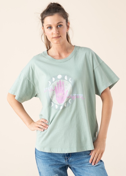 Diverse kokvilnas t-krekls lieliski der valkāšanai ikdienā. Vienkāršs t-krekls ir ērti un ar brīvāka piegriezuma , kā arī priekšpusi rotā drukas attēls. Foto: augums 177 cm valkā S izmēru.