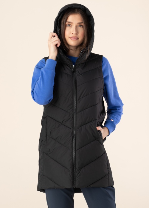 Moderna Diverse veste ir praktiska sabiedrotā pavasara, vasaras un rudens laikapstākļos. Daudzpusīga silta veste ir ar kapuci un ar stepētu apdari. Priekšpusē aizdare ar rāvējslēdzēju , kā arī sānos ir atvērtas kabatas. Foto: augums 178 cm valkā S izmēru.