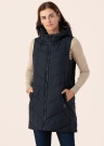 Diverse sieviešu veste Meris ir viegla un garākas piegriezuma, kas nodrošina komfortu un praktiskumu. Veste ir aprīkota ar kapuci un stepētu apdari, kas piešķir siltumu un stilīgu izskatu. Priekšpusē ir rāvējslēdzējs, kas ļauj to viegli uzvilkt un novilkt. Vestei ir kabata sānos un lente ar zīmola motīvu, kā arī etiķete zem kreisās kabatas. Modeles augums ir 176 cm, un viņa valkā S izmēru.