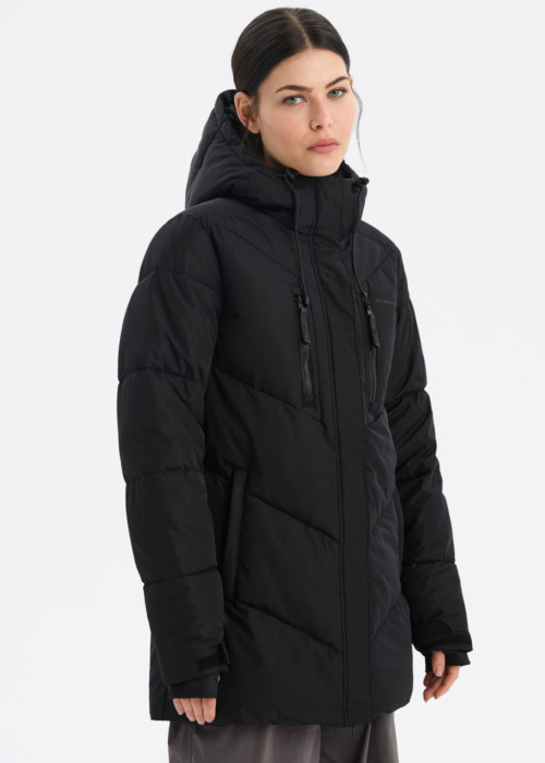 Diverse Women ziemas jaka Evo Priani ir stilīga un ērta izvēle aukstajiem mēnešiem. Tā ir veidota ar stepētu apdari, kas nodrošina papildu siltumu, un tās materiāls ir ūdens atgrūdošs un vēja necaurlaidīgs. Jakai ir savelkama kapuce, kas palīdz saglabāt siltumu, un priekšpusē ir krūšu kabata ar rāvējslēdzēju, kas ir gan praktiska, gan stilīga. Piedurkņu galos ir klipsis, kas nodrošina papildu aizsardzību pret aukstumu.
