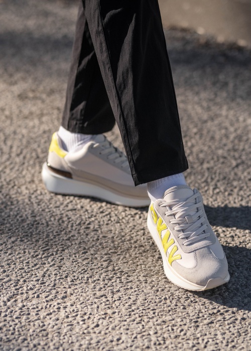 Tīra stila DKNY brīvā laika apavi der aktīvai ikdienai. Viegli brīvā laika apavi ir ērti un praktiski. Virsējā apdare kombinēta zamšādas un no tekstila , kā arī akcentu piešķir izteiksmīgs zīmola logo sānos un dekoratīvi elementi papildina uzmanību piesaistošo izskatu. Iekšpusē tekstils un iekšzoli klāj mākslīgā āda un ārzole no sintētiska materiāla. Esi gatava katrai pārsteidzošai dienai!