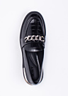DKNY sieviešu sun loferi ir moderni un pamanāmi apavi, kas lieliski iederas ikdienas un pilsētas stilā. Tie piešķir koptēlam pārliecinošu, mūsdienīgu noskaņu un palīdz izcelties bez liekas piepūles. Apavu virspusi rotā ķēdes detaļa un reljefs raksts, kas izceļ materiāla faktūru un piešķir dizainam dzīvīgumu. Savukārt papēža daļu papildina dekoratīvs akcents, kas kopējo izskatu padara vēl elegantāku.