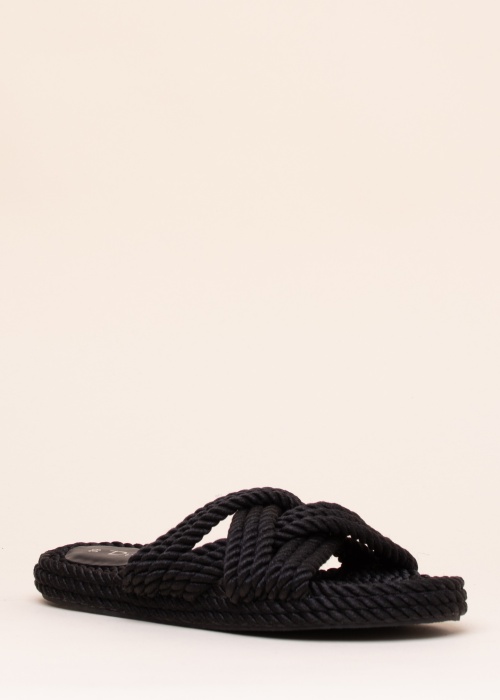 Atraktīvas, savdabīgas Duffy zīmola sandales ir ideālas valkāšanai vasaras sezonā. Virspusē efektīgi tekstila auklu motīvi, kas savā starpā krustojas. Iekšējā virsma izgatavota arī no tekstila, un gumijotā ārzole veicina saķeri ar dažādām virsmām. 39. izmēra apava svars ir 204 g.