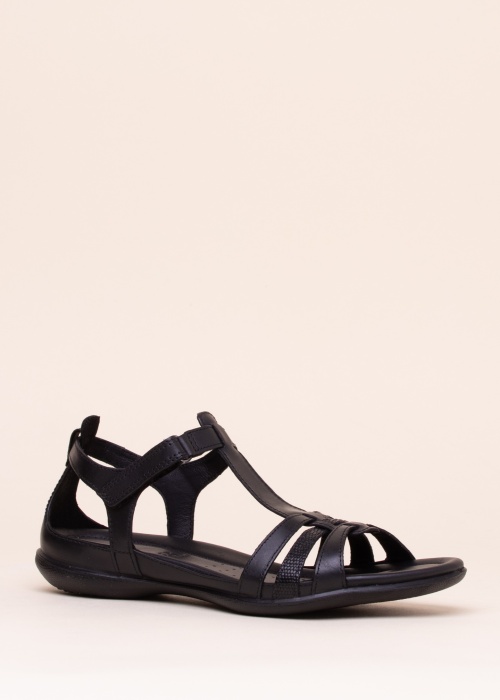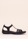 Vieglas un skatienus piesaistošas, patiesi ērtas Ecco ādas sandales sievietēm. Siksniņu kurpes aizdarāmas ar līplentes aizdarēm. Siksniņu iekšējā virsma ir no ādas, iekšējā zole ar mīkstinājumu, apstrādāta ar ādas virsmu. Zole no sintētiska un izteikti lokana materiāla, veidojot labu saķeri ar zemes virsmu. 39. izmēra sandale sver 185 g. Krāsa: Melna